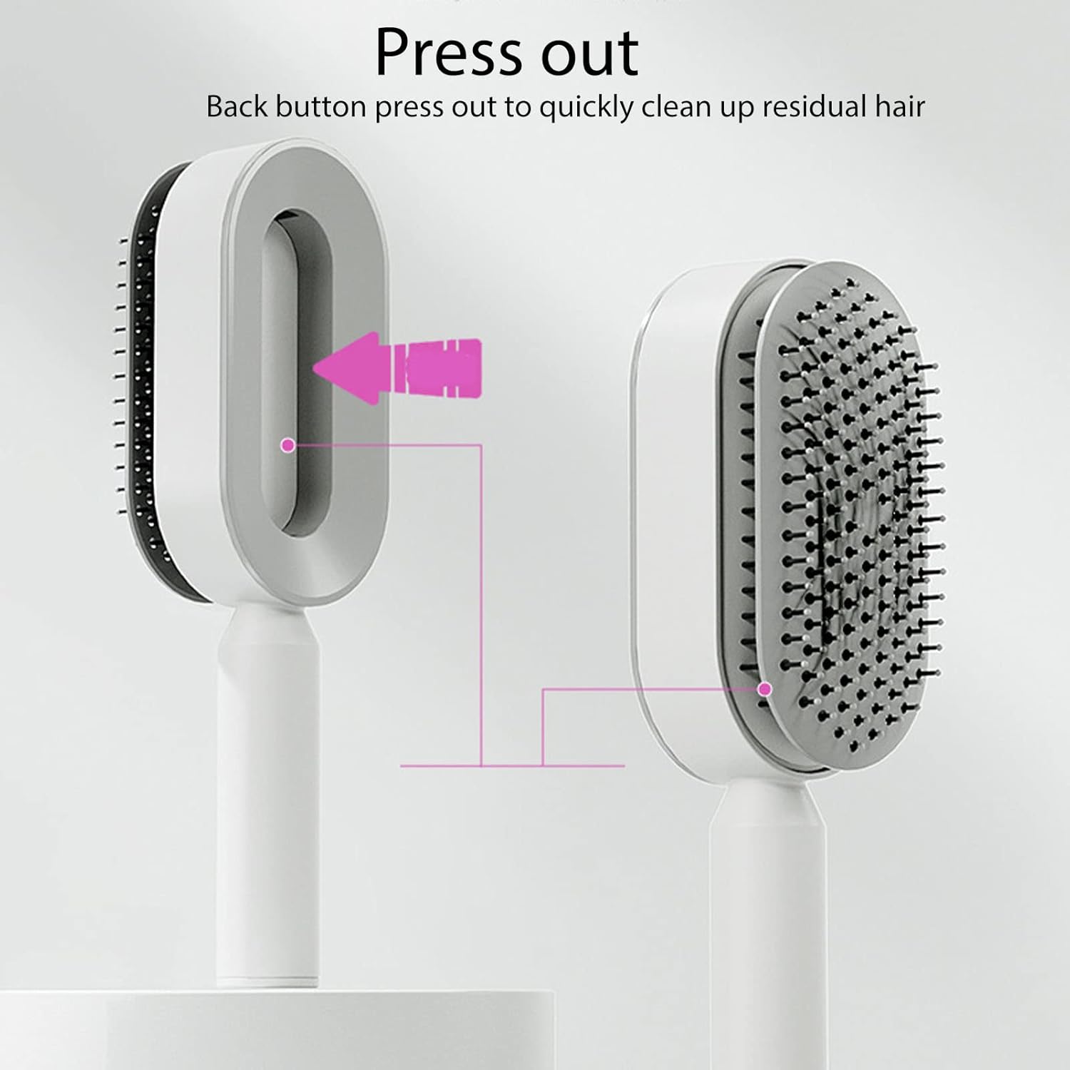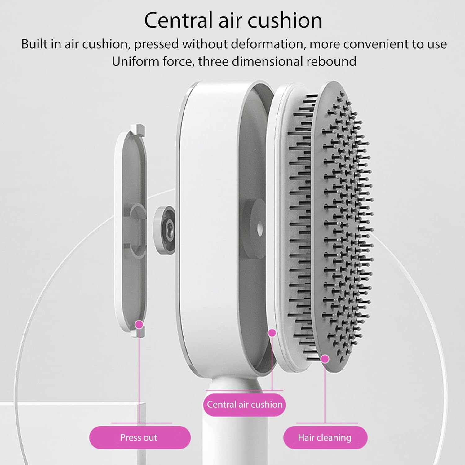 - COJÍN DE AIRE CENTRAL: Cepillo de pelo auto limpiante con cojín de aire incorporado, rebote tridimensional, prensado sin deformación, más cómodo de usar.